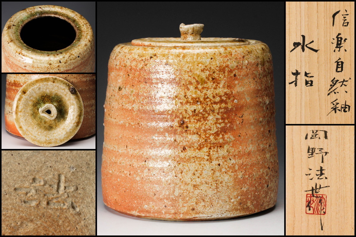岡野法世 信楽自然釉水指 共箱 栞 作陶展パンフレット 茶道具 本物保証