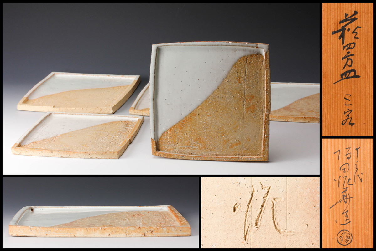 十三代 坂田泥華 萩四方皿 五客 共箱 本物保証